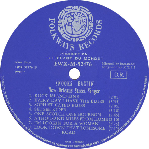gatefold LPnotes (in French) "d'après" Kenneth S. Goldstein = Le Chant Du Monde FWX 52476 (Fr 1977?) "New Orleans Street Singer"