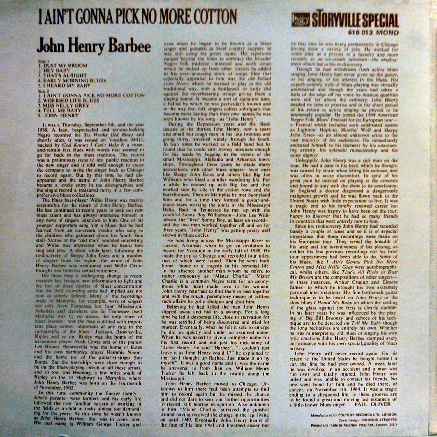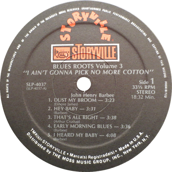 = Storyville 616013 (1965)"I Ain't Gonna Pick No MoreCotton"