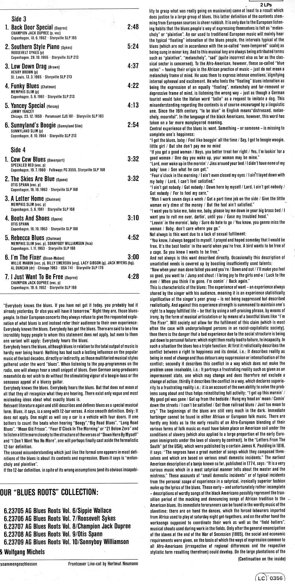 = Storyville SLP 4037= Storyville/Teldec 6.23701 (1981) "Blues Roots Vol. 3"