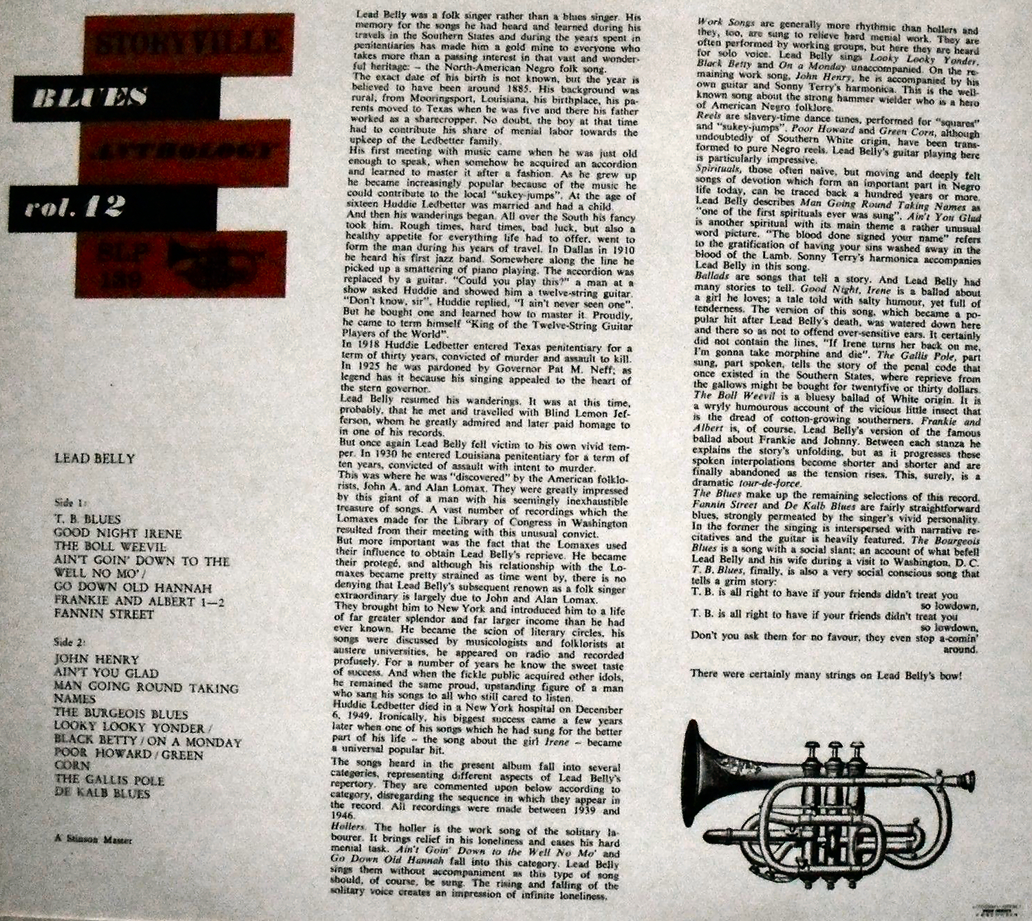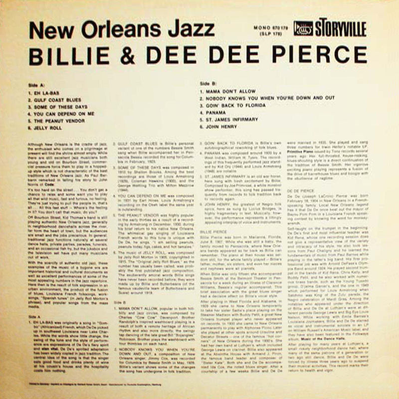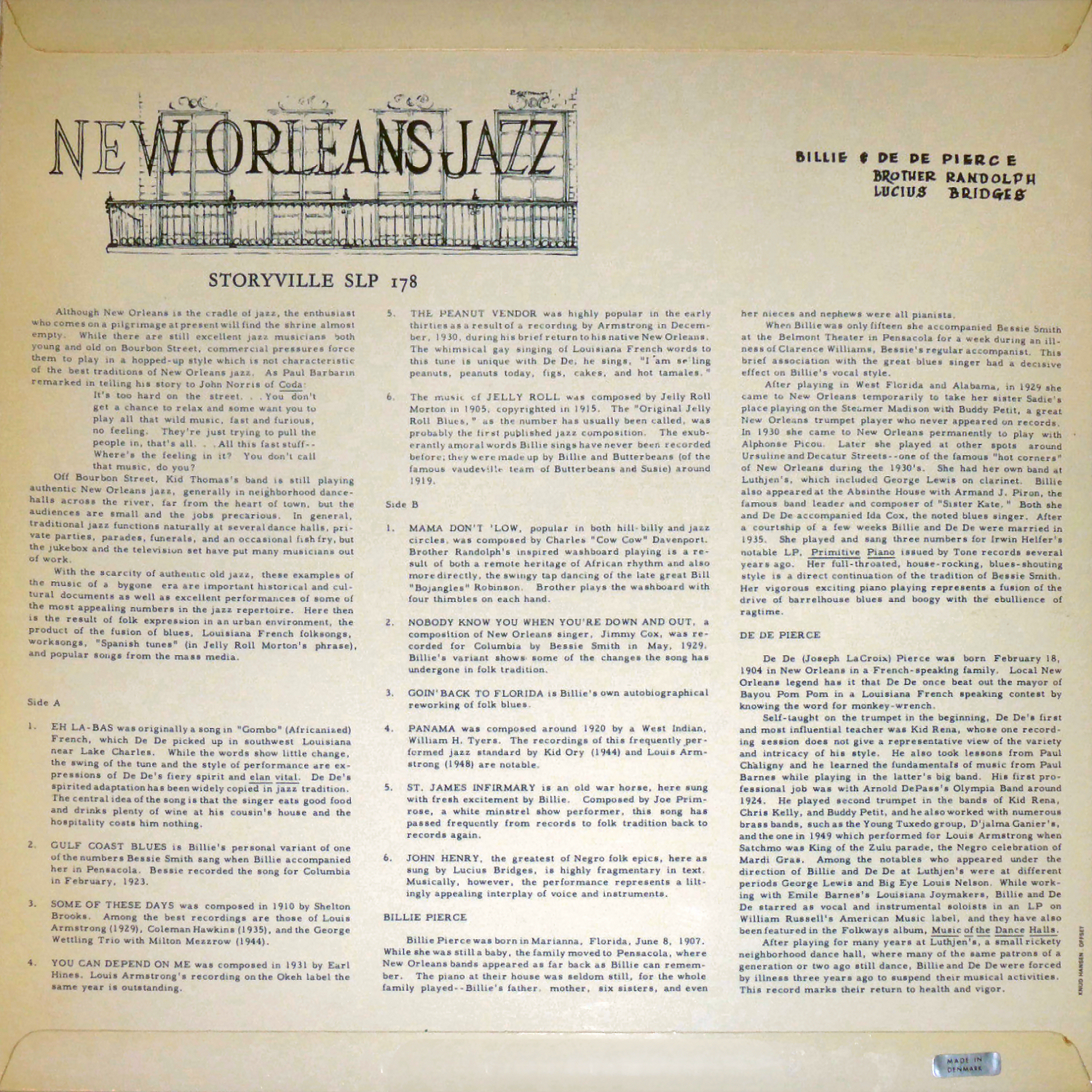 notes by Kenneth S. Goldstein = Storyville SLP 119 (Denmark 1964) "New Orleans Street Singer"