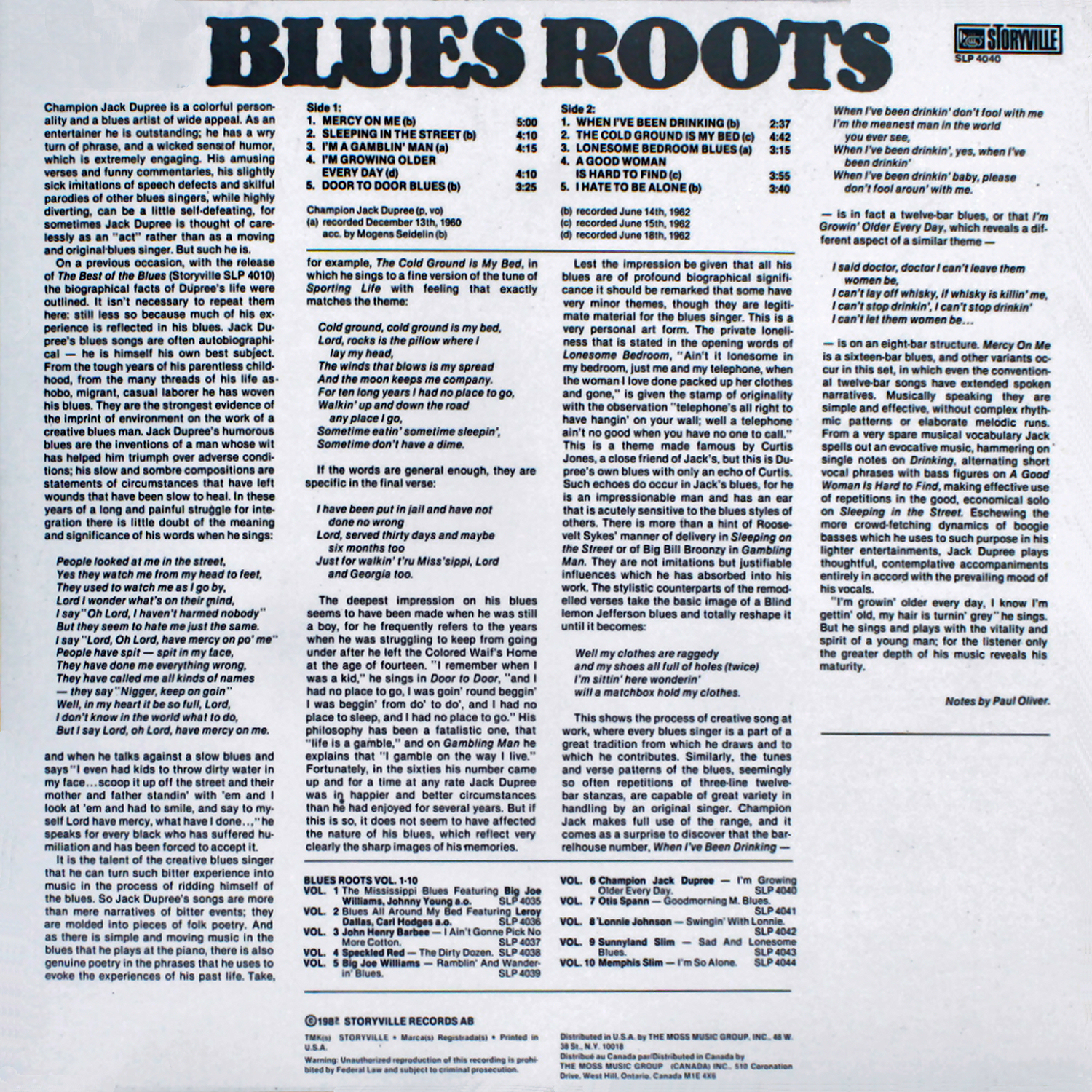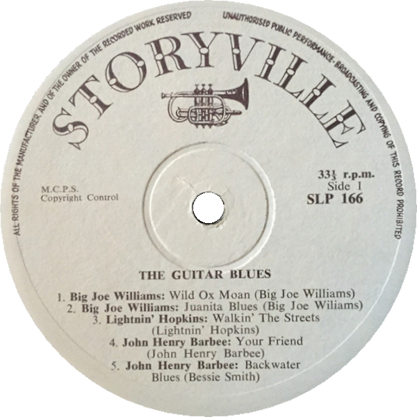 notes by Tony Standish= Storyville SLP 4038 (1981)"Blues Roots Vol. 4"