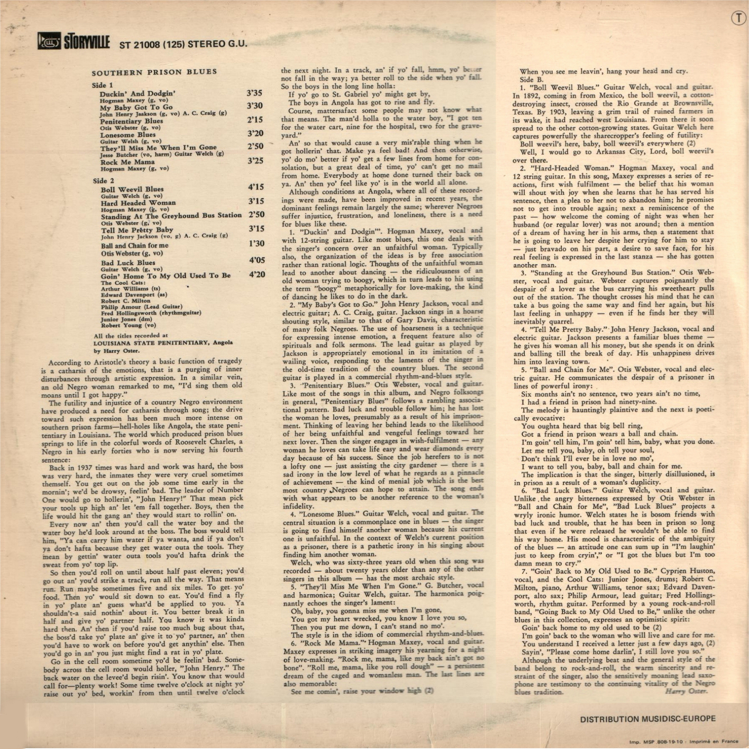 = Storyville Special 616002 (UK 1965) "Louisiana Prison Blues"