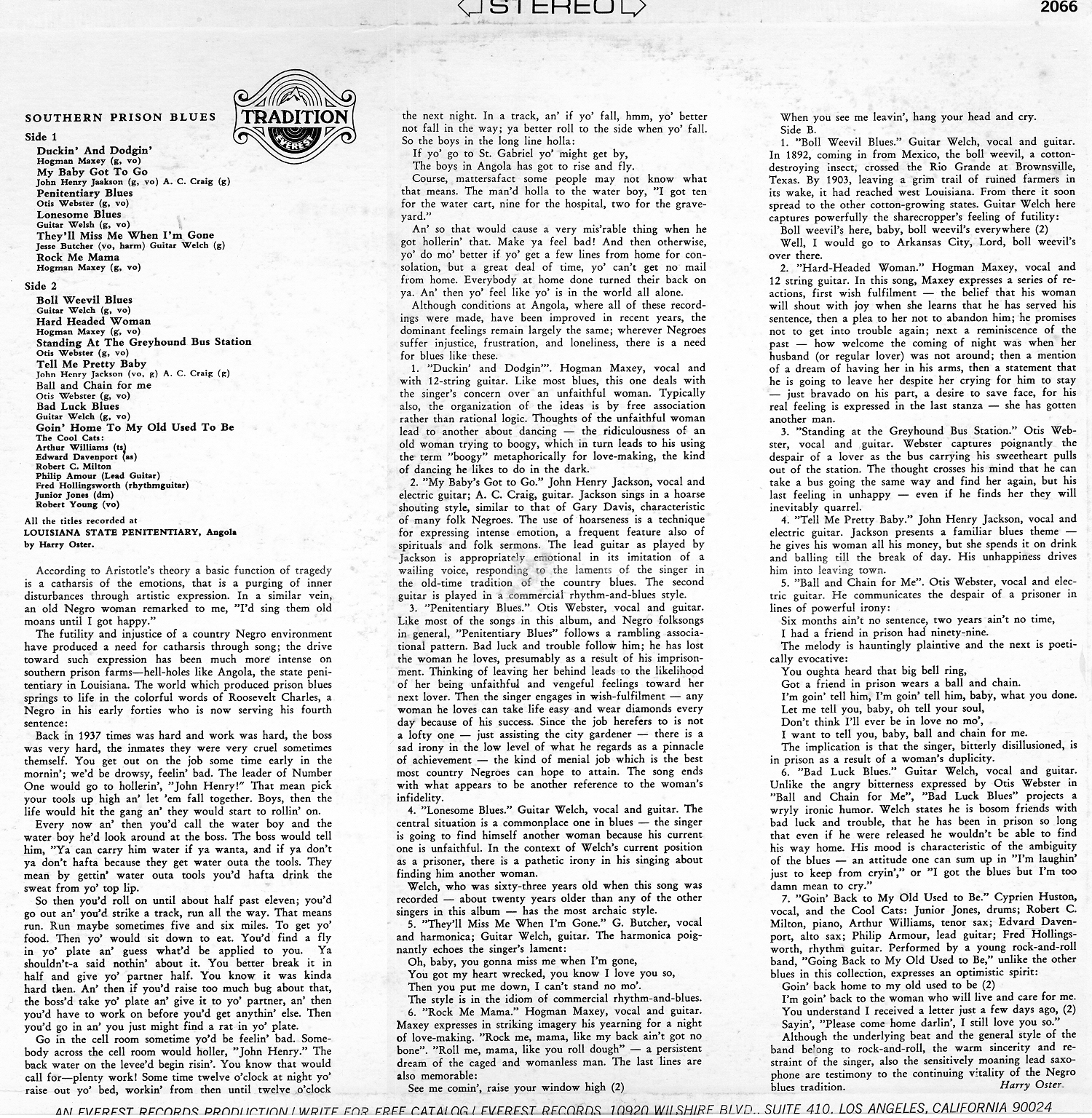 notes by Harry Oster Everest / Tradition TR 2066 (US 1961?)