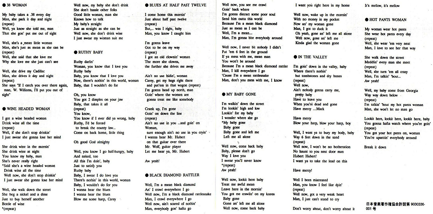 Philips/Phonogram SFL-7385 track sequence: - Five Long Years - Muddy Waters - Sittin' And Cryin' The Blues - Willie Dixon - Crazy For My Baby - Willie Dixon - Matt's Guitar Boogie - Matthew Murphy - I Don't Know - Sonny Boy Williamson - I'm Trying To Make London My Home - Sonny Boy Williamson - Ain't It A Pity - Lightnin' Hopkins - Baby, Please Don't Go - Lightnin' Hopkins - Everytime I Get The Drinking - Sunnyland Slim
