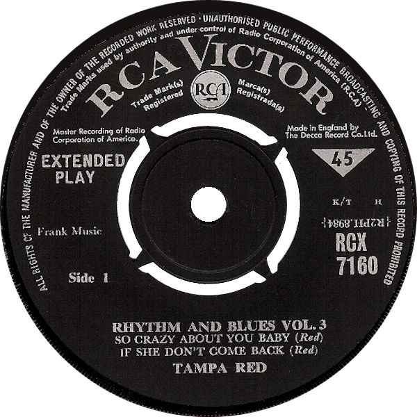 British Rhythm Society BRS 994 (US 1952) [Dante S. Bolletino's label, New York City] as by "Tampa Red's Hokum Jazz Band"
