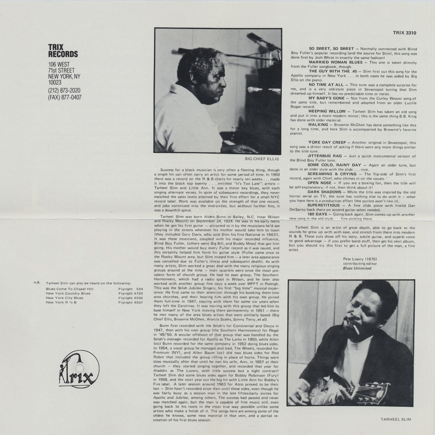 2 CD setnotes by Kevin Calabro & Fetzer Mills Jr.(=) 32 Blues 32109 (US 1999) (along with 'Does 12') "The Complete Trix Recordings"