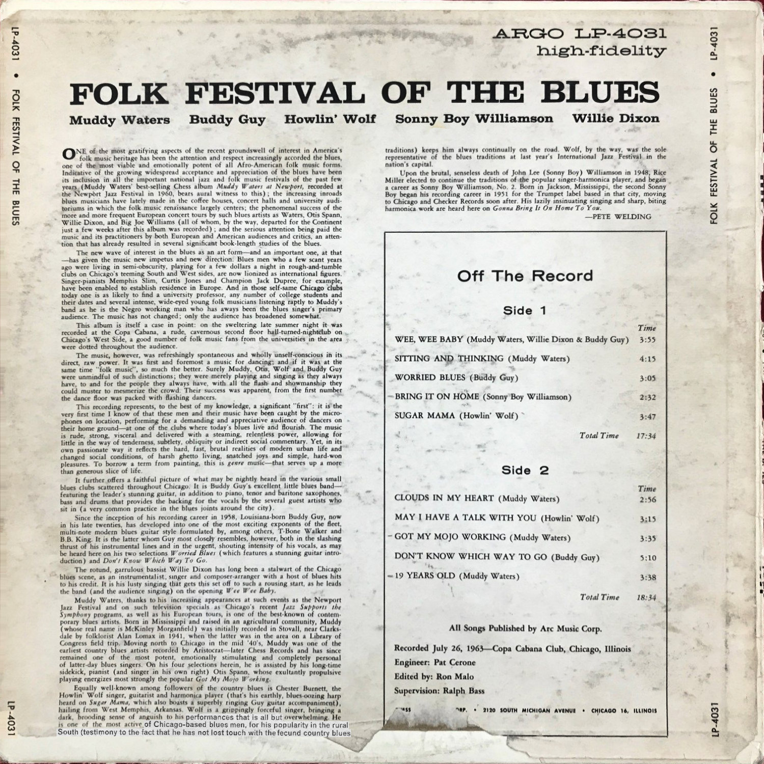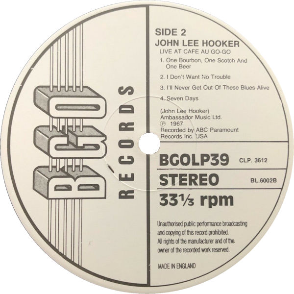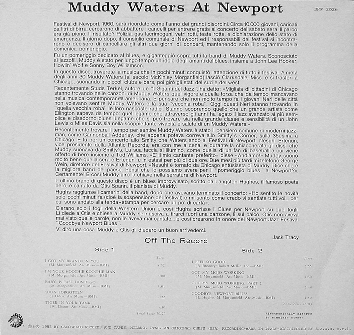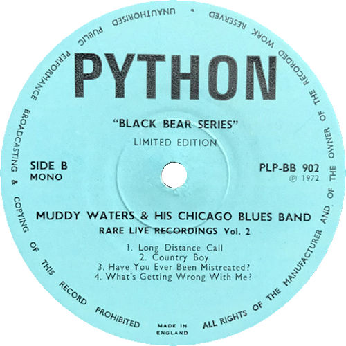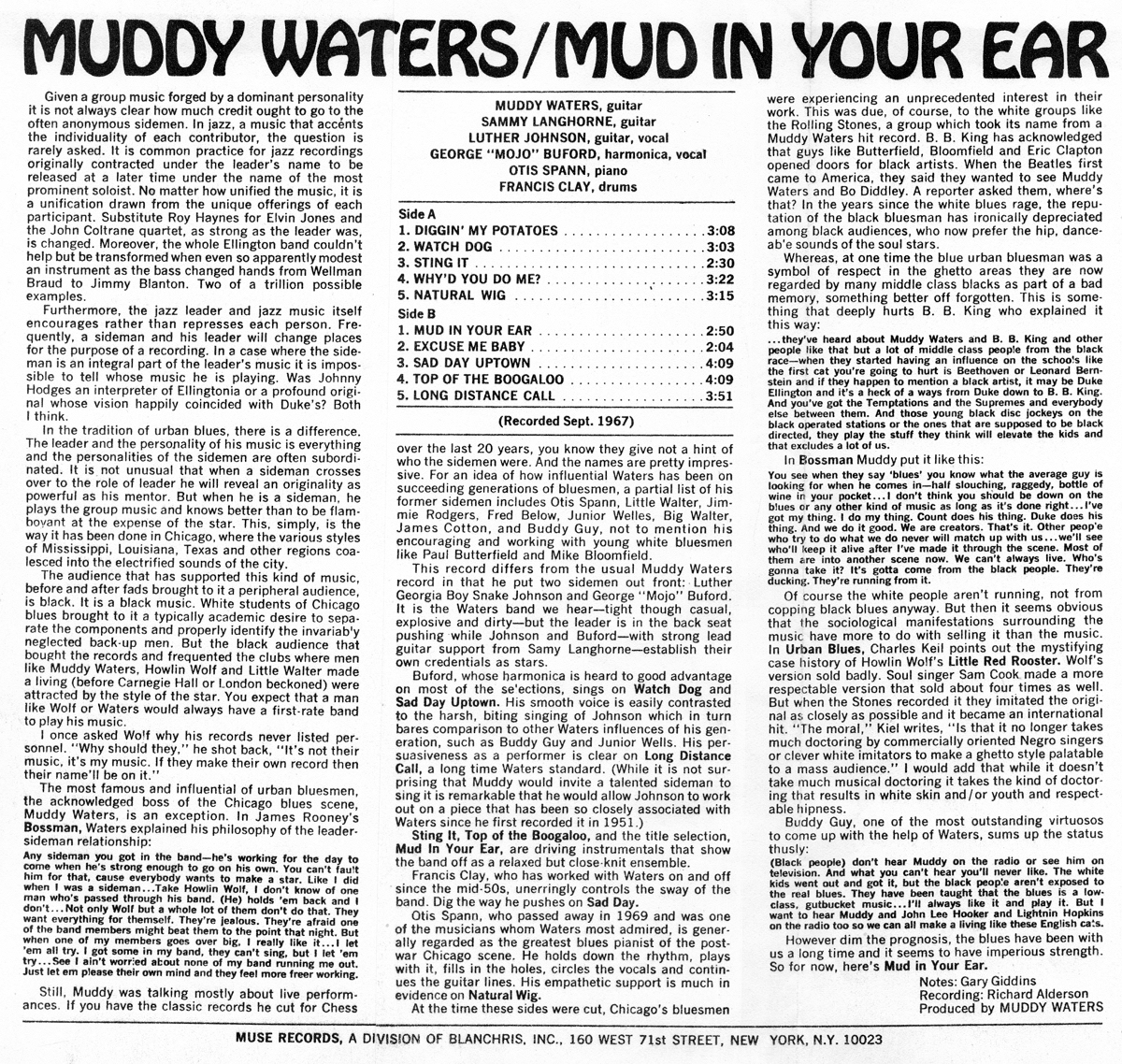 Muddy Waters and the band also played one night at the Jazz Club in Bristol on October 12, 1968and two nights at the Marquee Club, London, on November 12 and 21, 1968