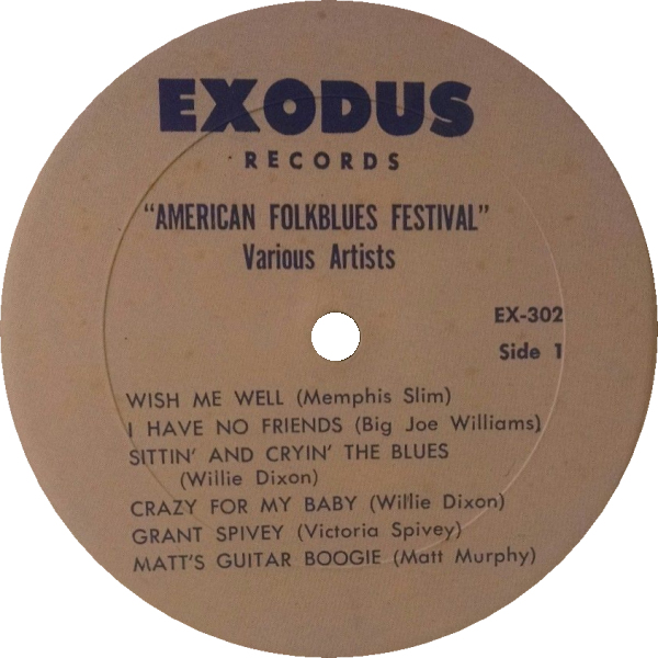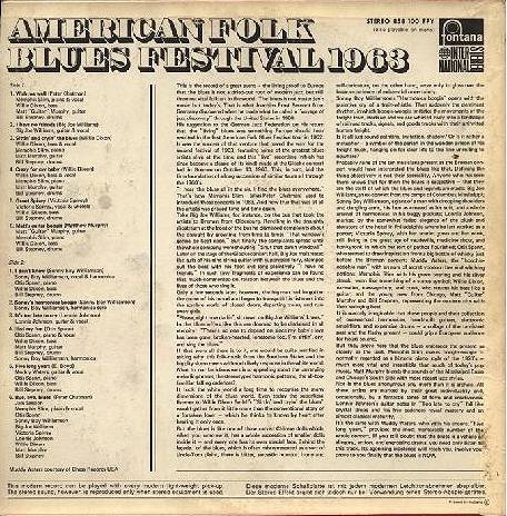 1963 AFBF ensemble (arrival at Frankfurt a.M. airport): from top: three airline company employees, Memphis Slim, Otis Spann, Muddy Waters, Bill Stepney,Sonny Boy Williamson; front row: Big Joe Williams, Len Kunstadt, Victoria Spivey, Willie Dixon; behind Willie Dixon: Matt 'Guitar' Murphysource of photo on the left: www.flickr.com/photos/7863952@N04/462846538/source of photo on the right: Juke Blues 20 (1990), p. 10 "(courtesy 1968 AFBF programme)"