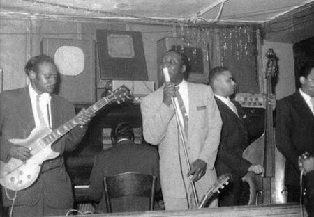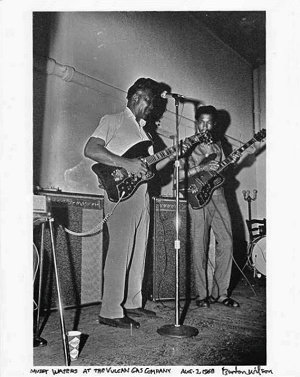 Muddy Waters Band at Silvio's Lounge, Chicago, December 1957Pat Hare, g; Otis Spann, p; Muddy Waters, voc; Big Crawford [died in March 1956!] Samuel "Singin' Sam" Chatmon, b;unknown saxophonist [prob. Sax Mallard]; Elga Edmonds, dr [in adjacent photo!]; James Cotton, hca [in main photo only hands holding microphone visible]source of main photo: de.pinterest.com/pin/440508407276721410/source of photo on the right: Living Blues 208 (August 2010); www.issues.louisvillemusicnews.net/2011/2011April/rambleapril2011.phpphotographer: Yannick Bruynoghe, December 1957 (same location, but not same session as main photo!) source: Front cover of Rhythm & Blues Panorama N° 25 (4é année - 1963) source: Promo card Harold Davison Ltd., London (European Representation) Muddy Waters at Silvio's Lounge, Chicago, December 1957; photographer: Yannick Bruynoghe Muddy Waters at Big Bill Broonzy's burial at Lincoln Cemetery, Blue Island, Illinois, August 19, 1958 l to r: Win Stracke, Muddy Waters, Ransom Knowling (hidden), Studs Terkel, Chet Roble,Brother John Sellers, Tampa Red, Sunnlyand Slim (top of head), Otis Spannphoto by Mickey Pallas, Collection Center for Creative Photography, University of Arizona