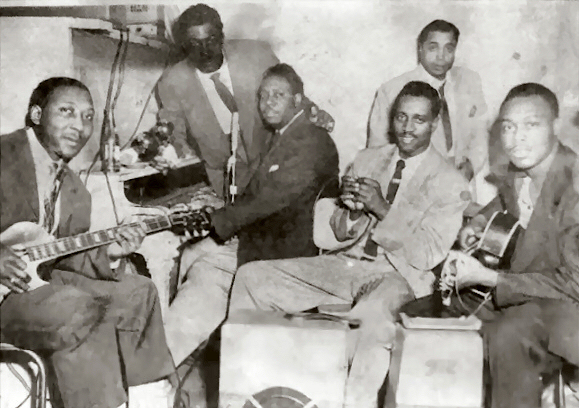 Hanging out in Muddy's basement at 4339 South Lake Park Avenue, Chicago, IL:James Cotton, Sonny Boy Williamson, Jimmy Rogers, Muddy Waters, Otis Spann, 1959 source: Front page of Block - Tijdschrift voor Blues #85 (jan/feb/mrt '93)photographer: Georges Adins ("met dank aan Kees van Wijngaarden")James Cotton's face pasted from http://www.youtube.com/watch?v=BmoNlTH66_8 by Stefan Wirz