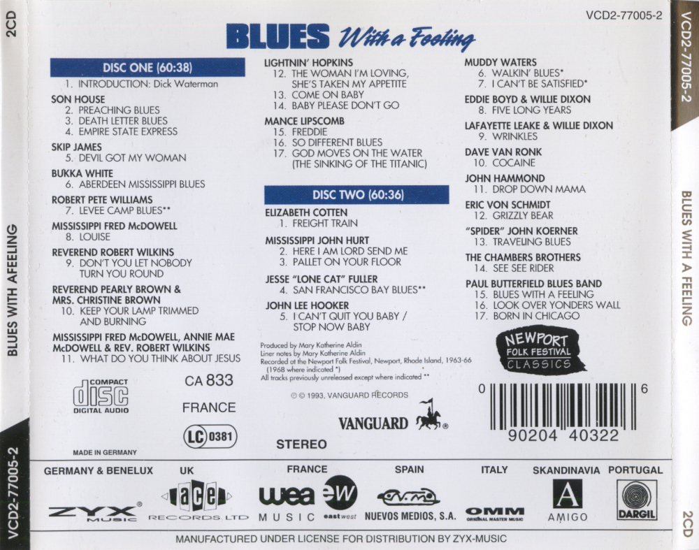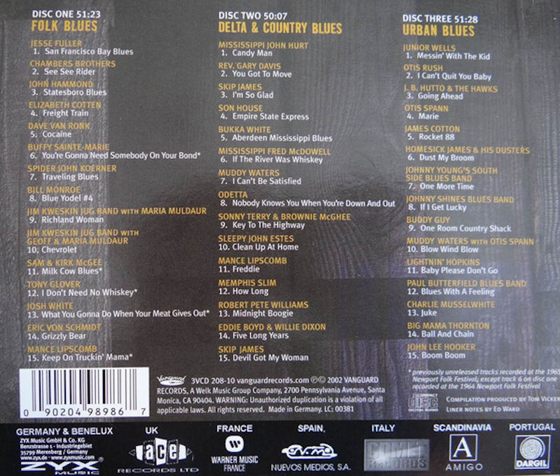 3 CD setnotes by Ed Ward Vanguard 3VCD 208-10 (Germany 2002)= Vanguard CD 79715 (US 2003)