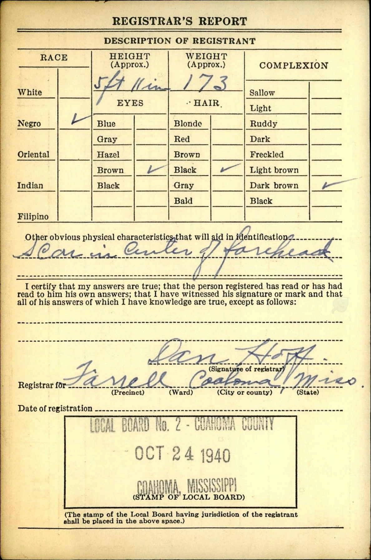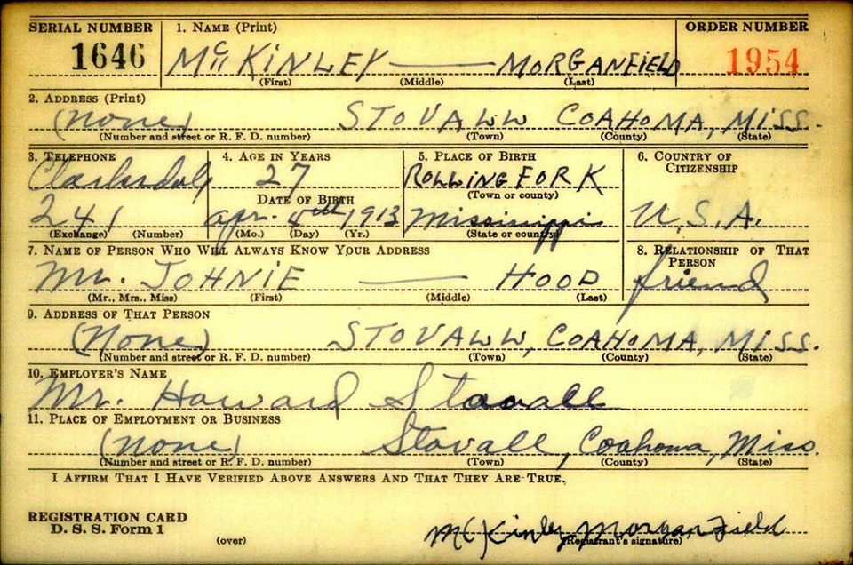Muddy Waters' September 24, 1945 AFM (American Federation of Musicians) application form