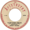 the green Aristocrat labels tend to fade with time. The faded portions of the label look yellow, and those that have faded all over look brownish yellow: Aristocrat 405 (US 2/1950)