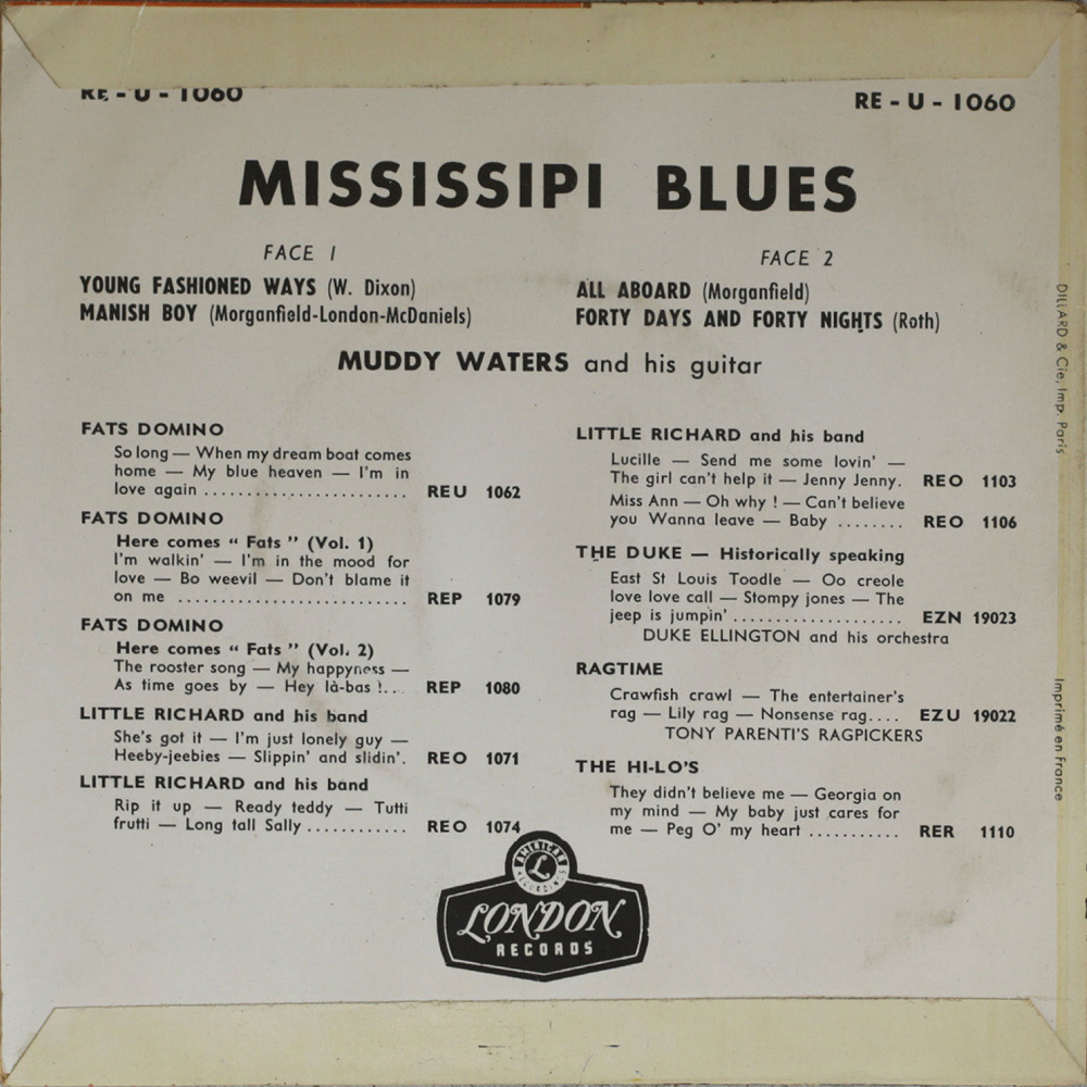 Concert for RTF in Paris, France (Maison de la Radio theater) 1964: Muddy Waters, voc, g; Otis Spann, p; Ransom Knowling, b; Willie 'Big Eyes' Smith, dr