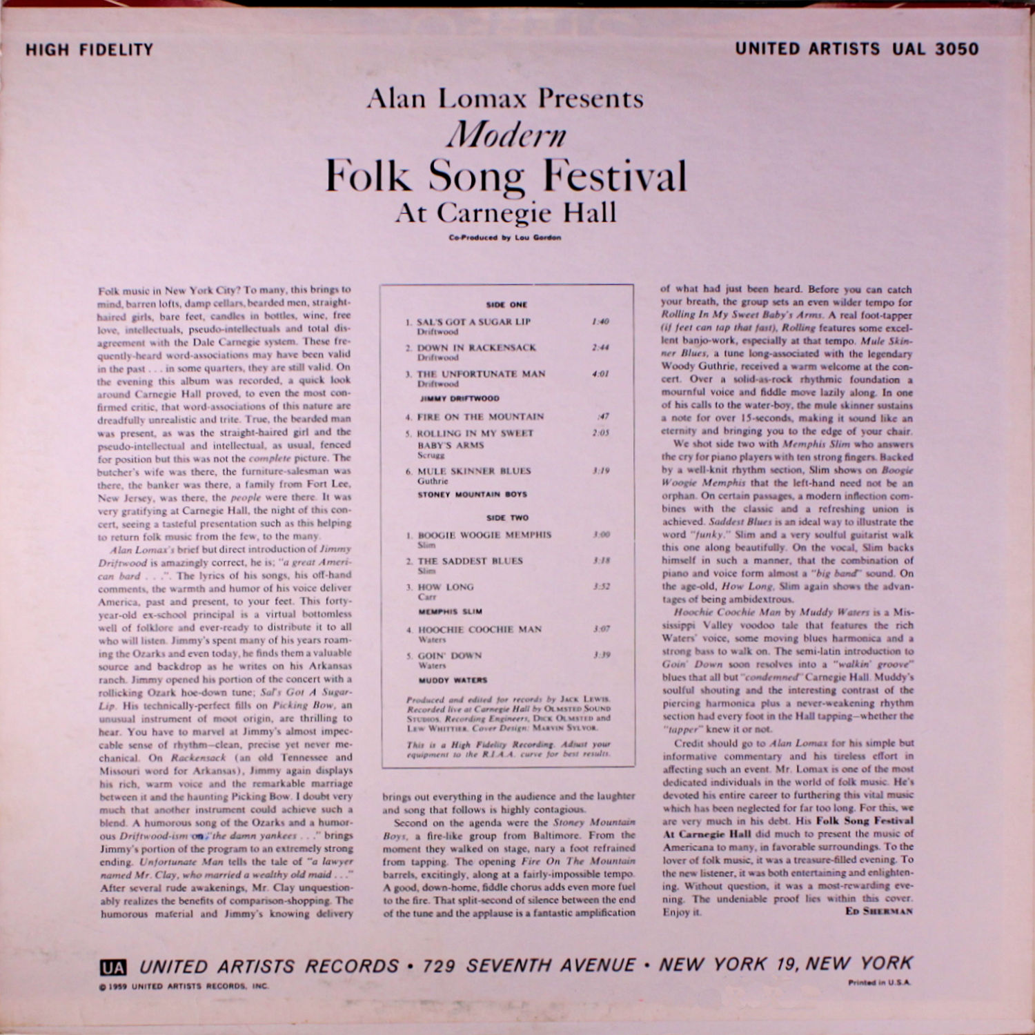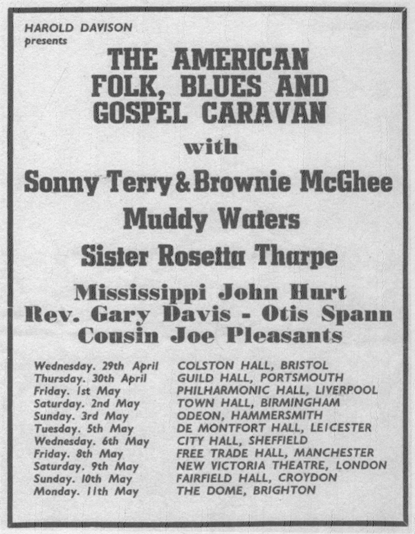 After returning from the UK tour, on May 15, 1964:"Folk Blues & Gospel Concert" at Hunter College in New York City(adding Mississippi John Hurt to the roster)