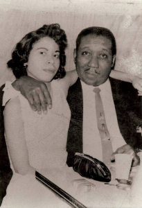 Muddy Waters with (l to r) his wife Marva and his daughters Mercy and Reneein front of his home, 16 South Adams St. in Westmont, Illinoissource: Internet; photographer's name not given