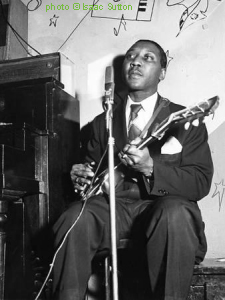Muddy Waters at 708 Club, Chicago, with his 1952 Les Paul Goldtop guitar, ca. 1953 [not 1943, as claimed elsewhere!]source: EBONY and JET magazine collection; photographer: Isaac Sutton