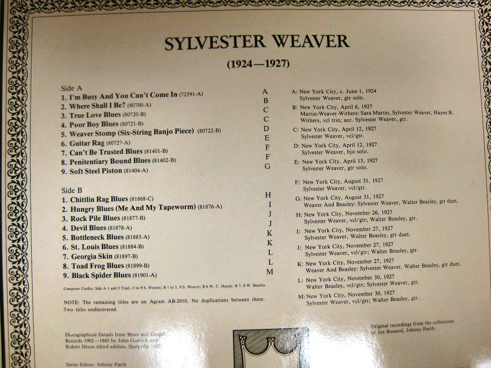 I herewith confessthat I do not have the ambition to list each and every CD anthology / compilationcontaining only one (or two ;-) Sylvester Weaver track(s) !!!
