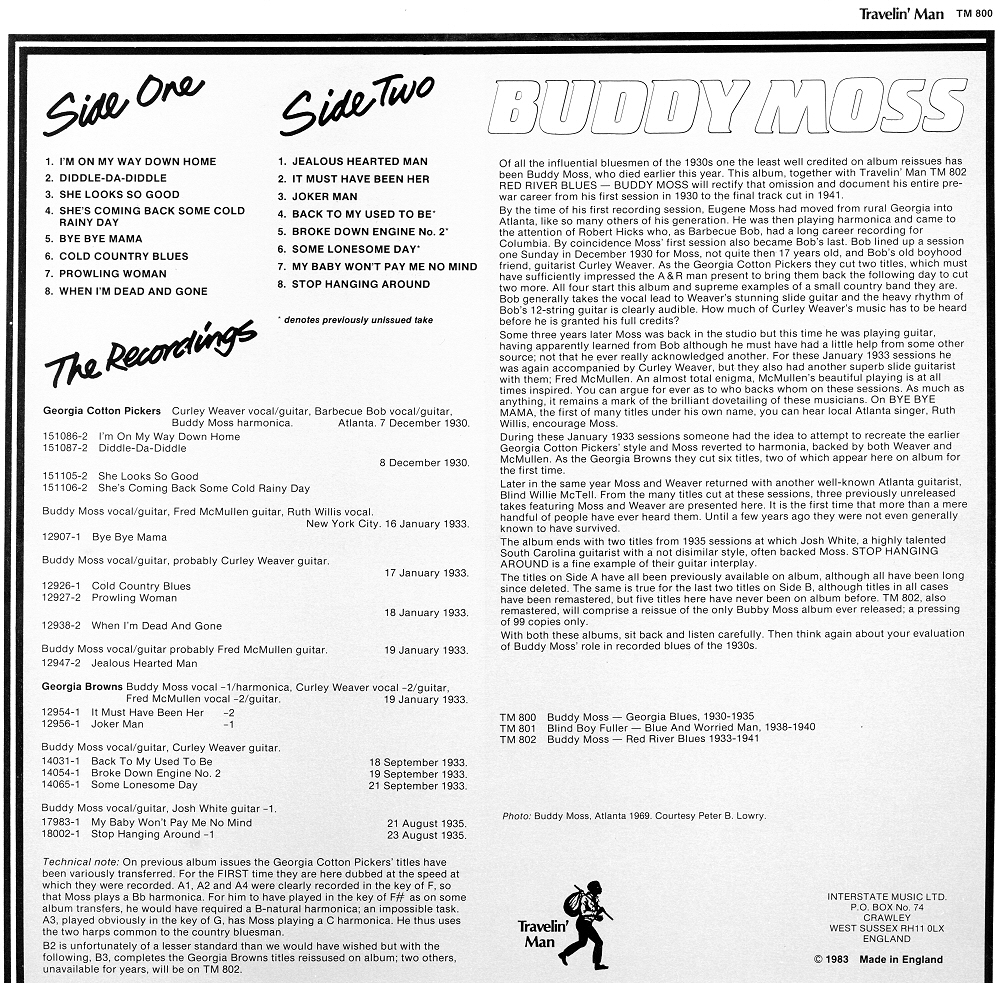 notes by Bruce Bastin Flyright LP 107 (UK 1973?)