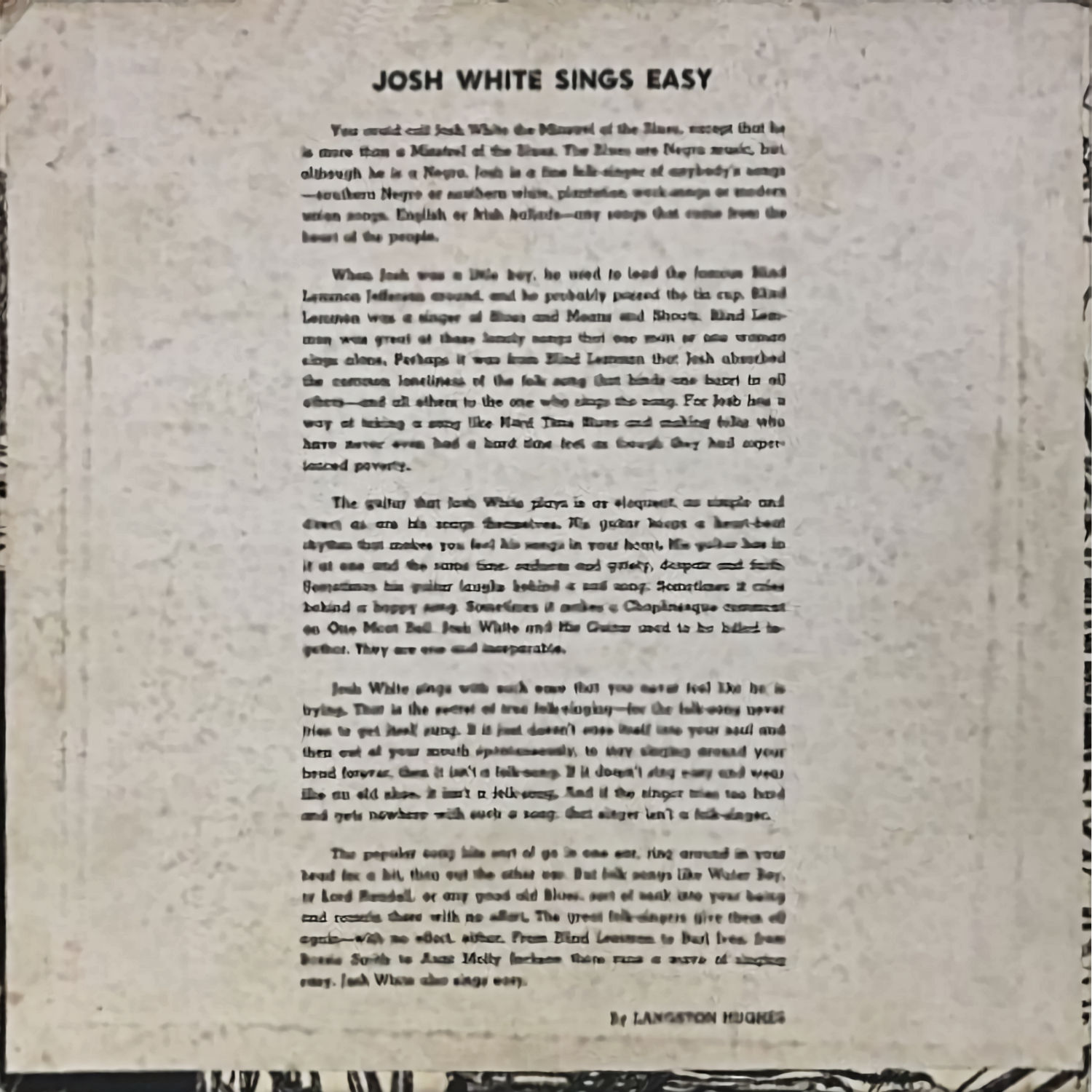 notes by Paul Oliver Columbia LP C/AL 46215 (US 1990)