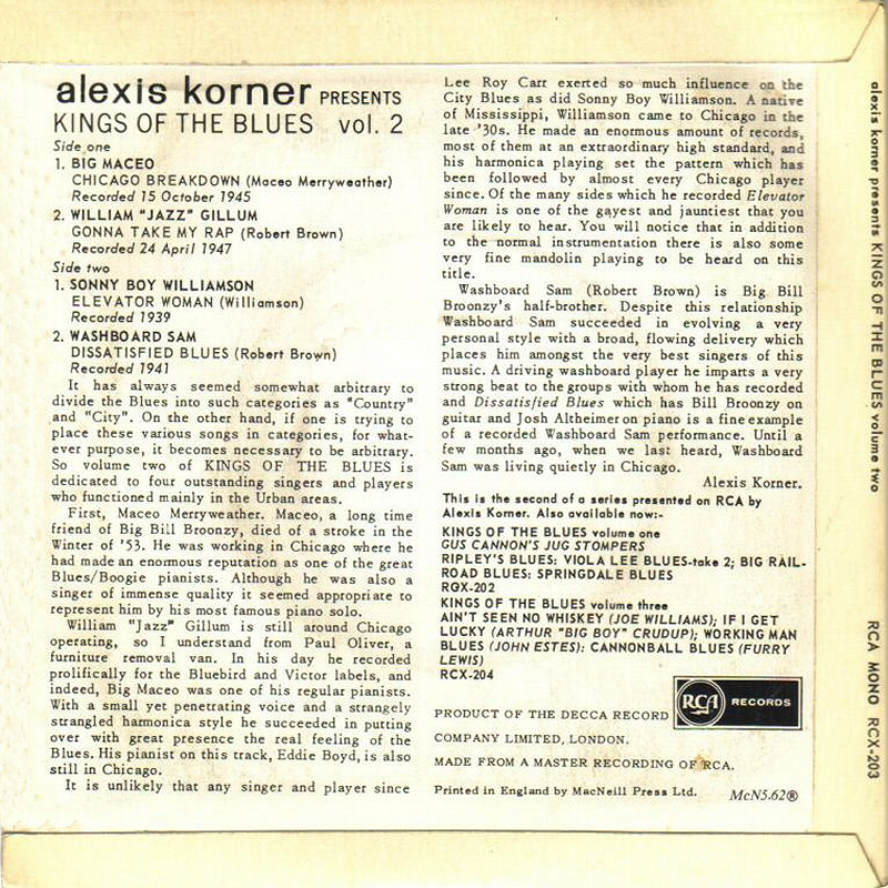 notes by Alexis Korner RCA RCX-203 (UK 11/1961)