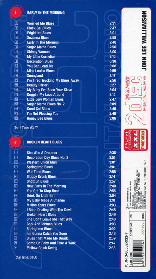 2 CD set History 20.1933-HI (Germany 1996) ("Nothing But The Blues" series)